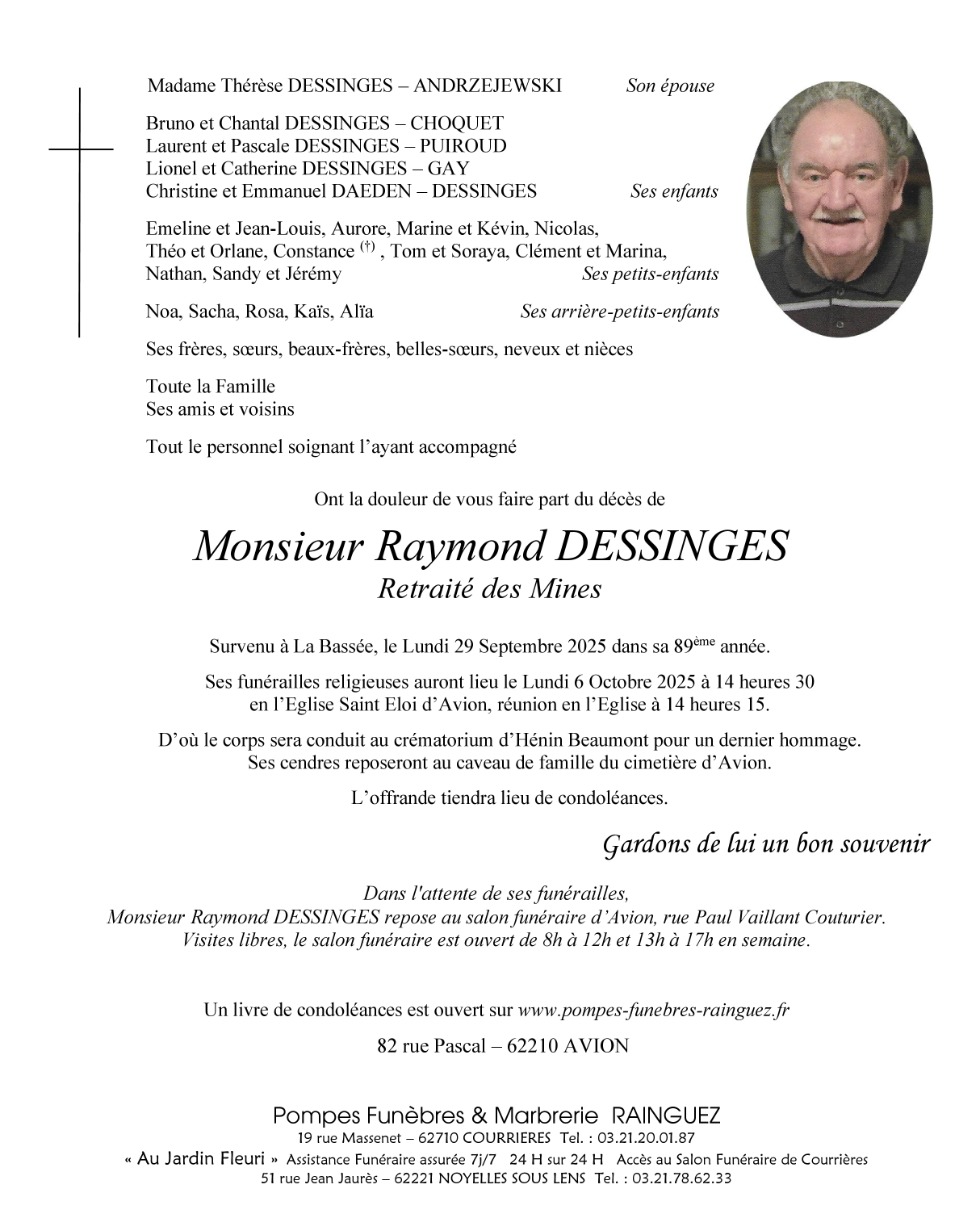 Décédé à La Bassée (59480, France) le lundi 29 septembre 2025 à l'âge de 88 ans