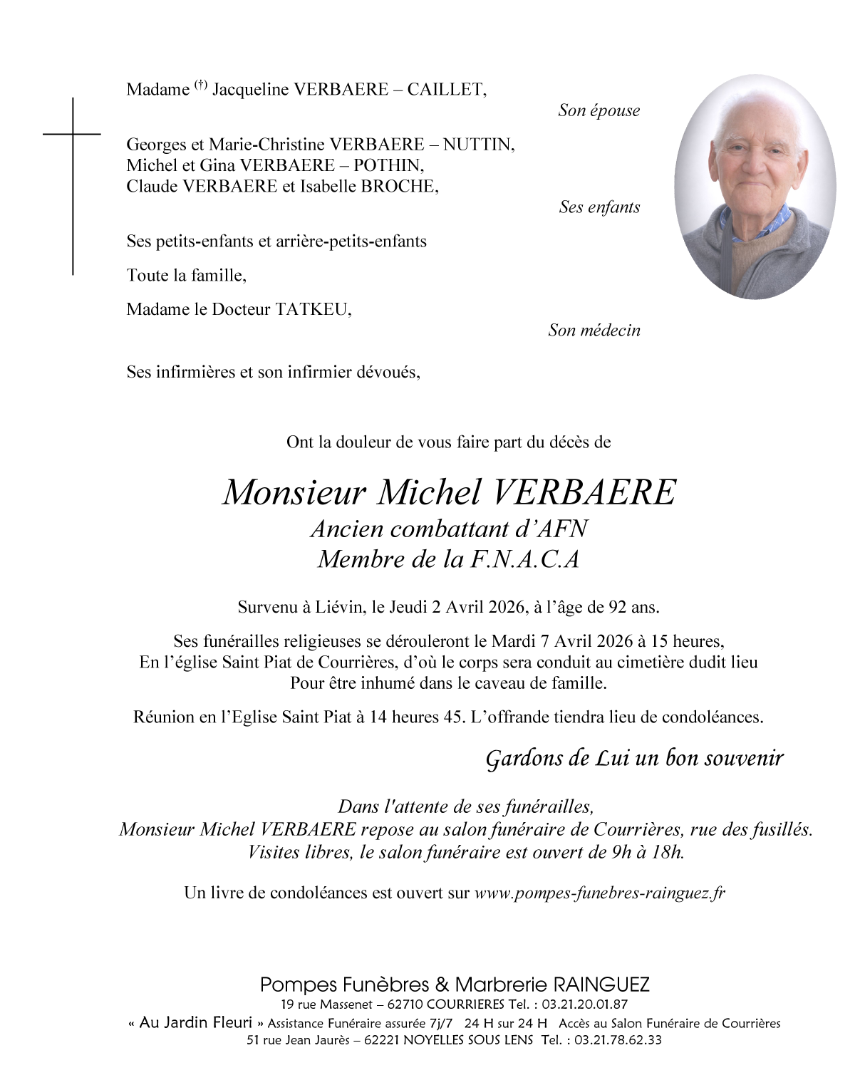 Décédé à Lievin (62800, France) le jeudi 2 avril 2026 à l'âge de 92 ans