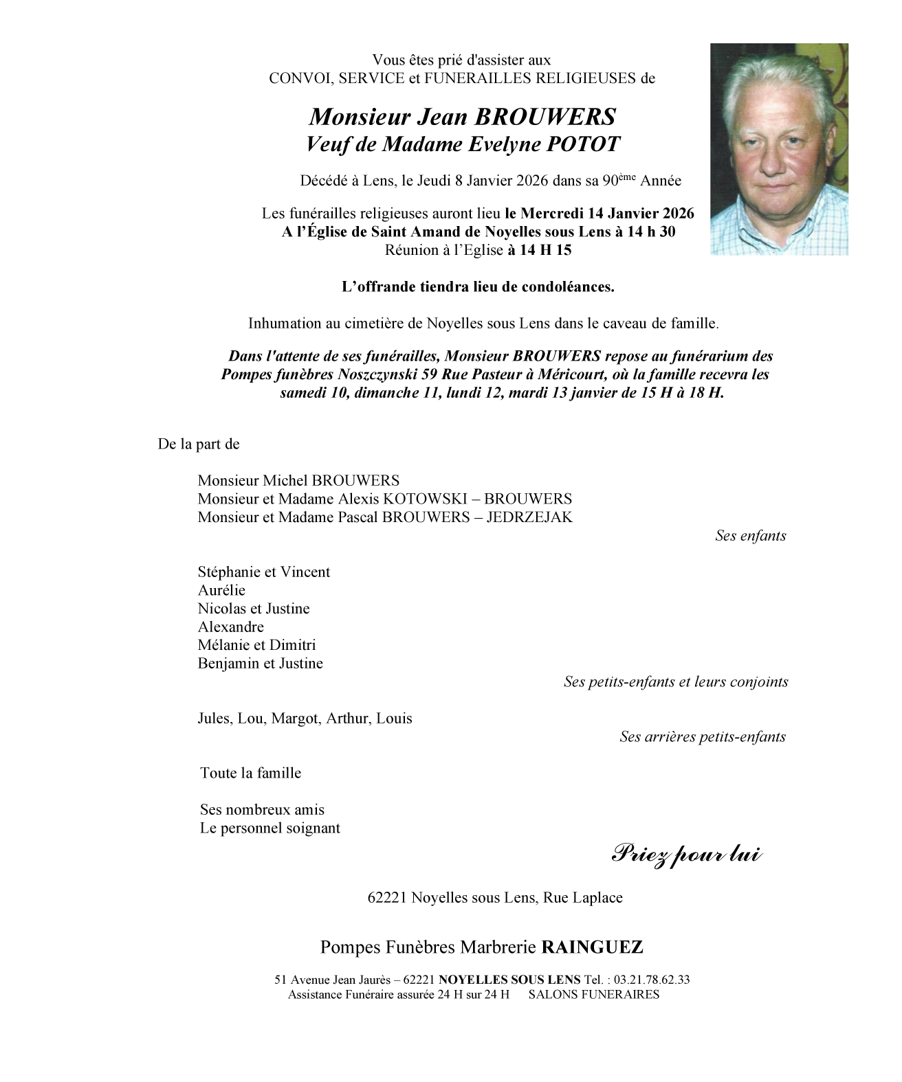 Décédé à Lens (62300, France) le jeudi 8 janvier 2026 à l'âge de 89 ans