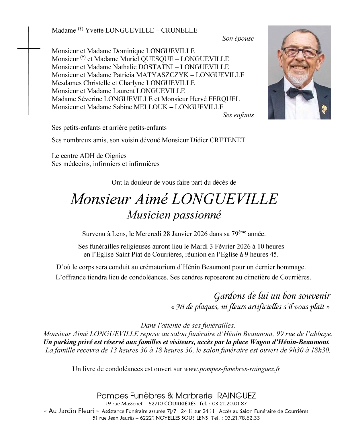Décédé à Lens (62300, France) le mercredi 28 janvier 2026 à l'âge de 78 ans