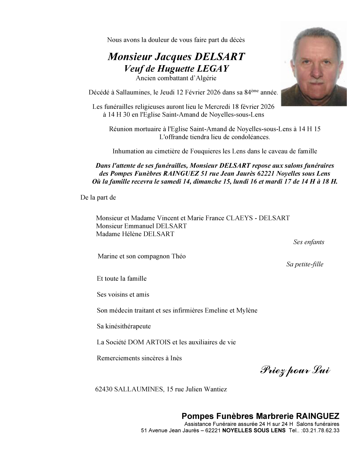 Décédé à Sallaumines (62430, France) le jeudi 12 février 2026 à l'âge de 83 ans