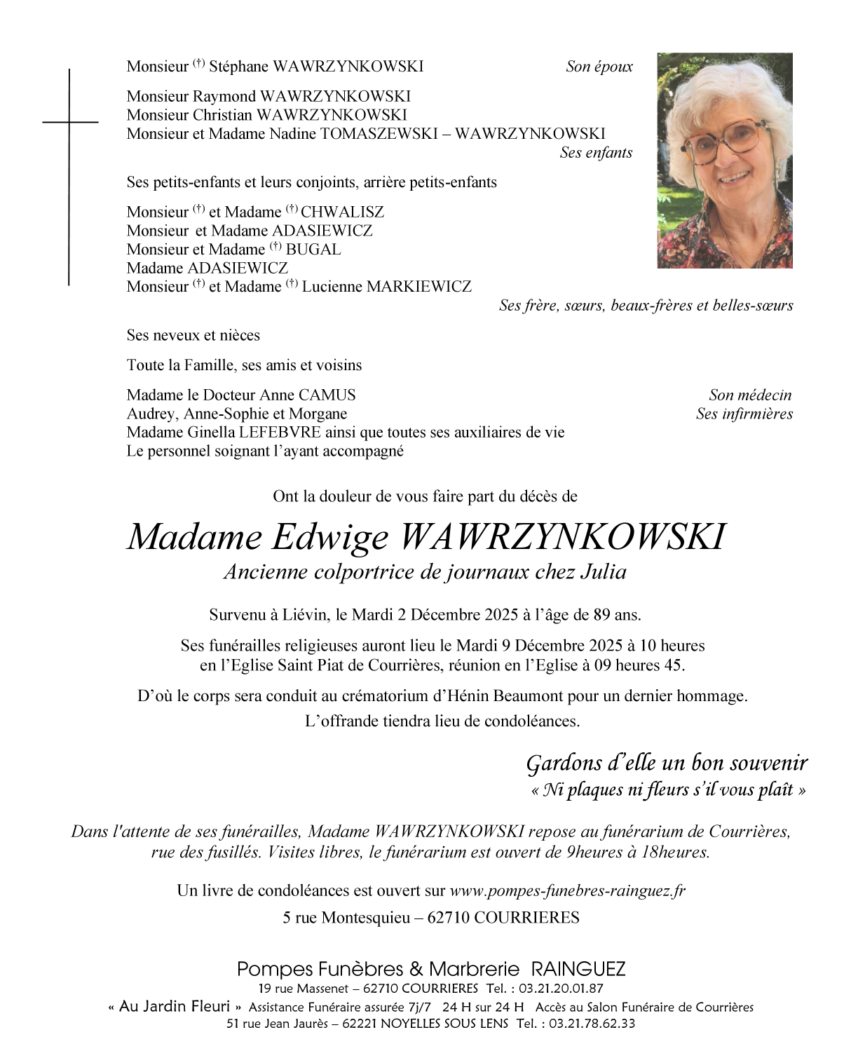 Veuve de Monsieur Stèphane WAWRZYNKOWSKI