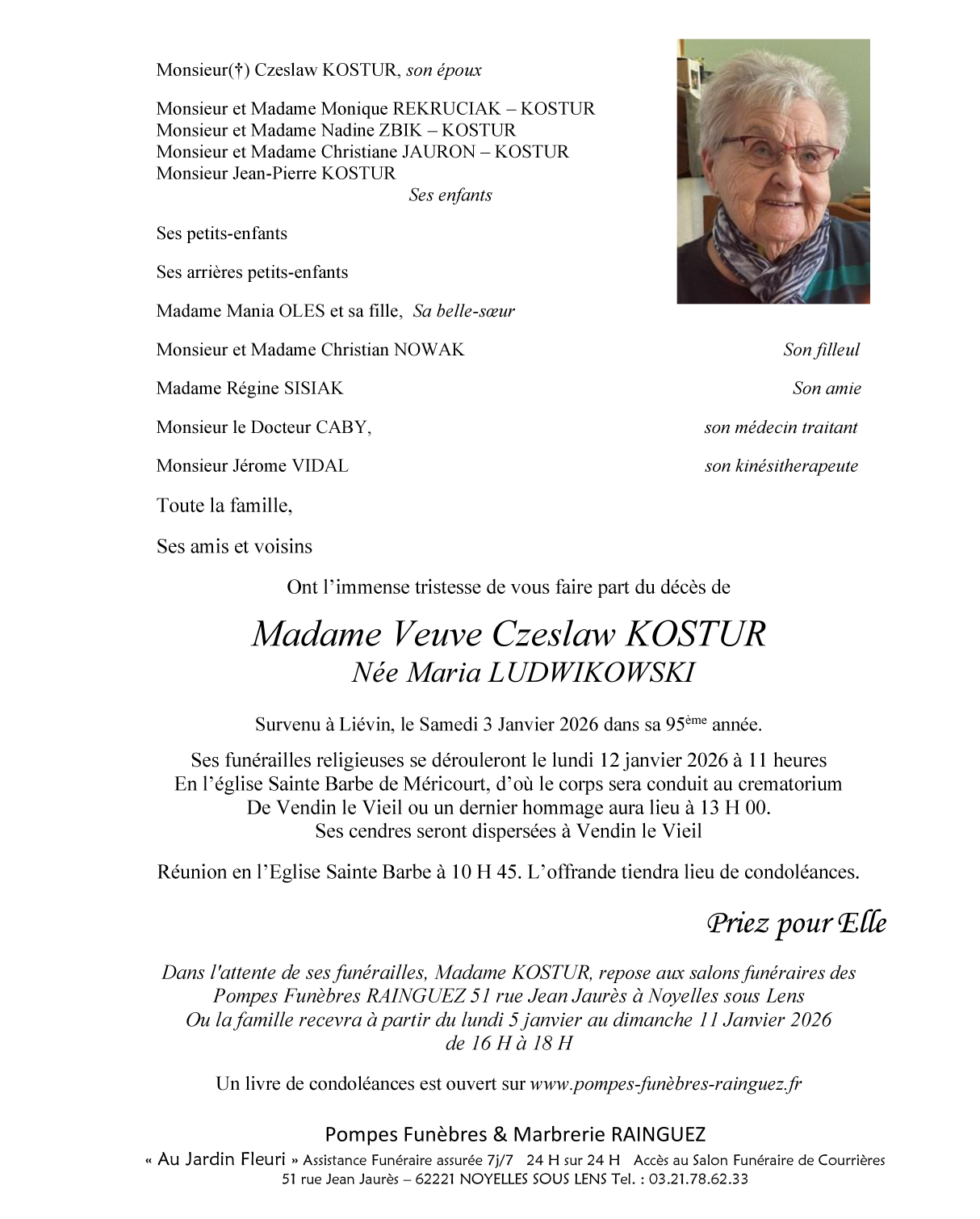 Veuve de Monsieur czeslaw KOSTUR