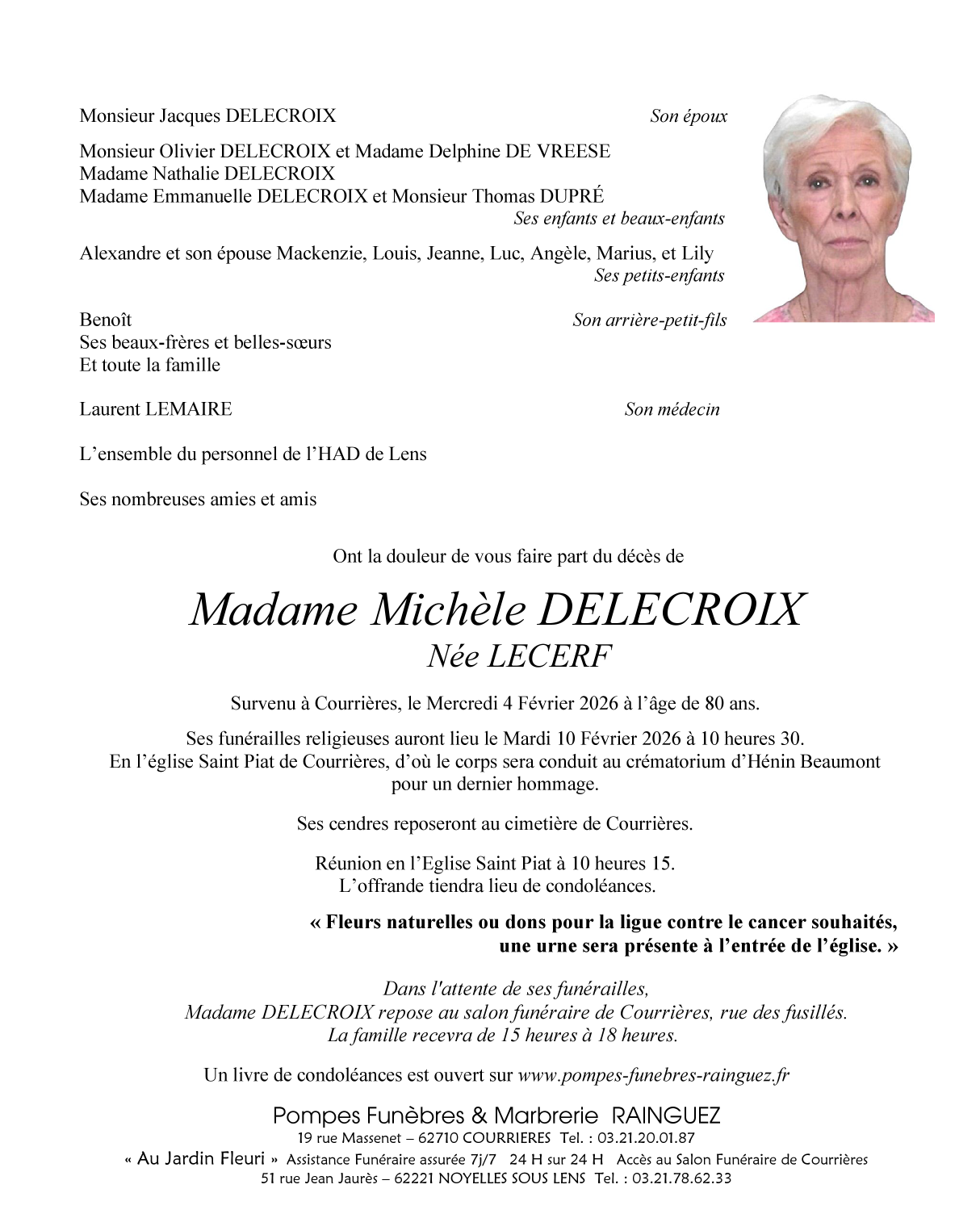 Décédée à Courrières (62710, France) le mercredi 4 février 2026 à l'âge de 80 ans