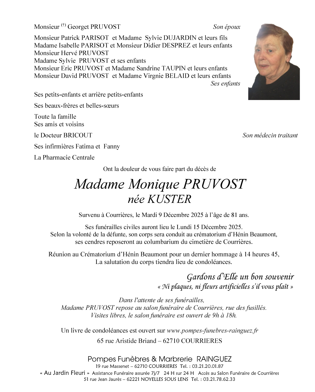 Décédée à Courrières (62710, France) le mardi 9 décembre 2025 à l'âge de 81 ans