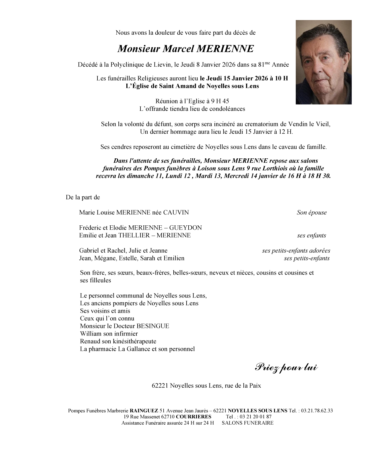 Décédé à Lievin (62800, France) le jeudi 8 janvier 2026 à l'âge de 80 ans