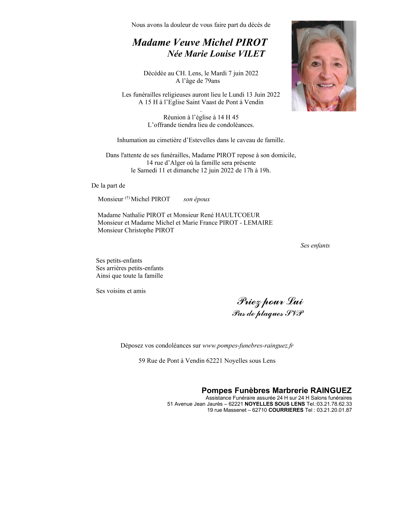 Décédée à Lens (62300, France) le mardi 7 juin 2022 à l'âge de 79 ans